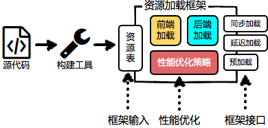 而资源加载框架则提供一些资源引用的API,让开发者根据id来引用资源,替代静态的script/link标签来收集、去重、按需加载资源。调用这些接口时,框架通过查表来查找资源的各项信息,并递归查找其依赖的资源的信息,然后我们可以在这个过程中实现各种性能优化算法来“智能”加载资源。